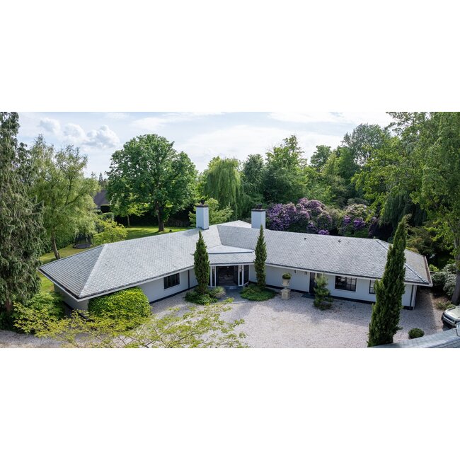 - Parkachtige tuin rondom onder architectuur aangelegd met tuinhuis (met gym, fitness, sauna en terrasverwarmer, garage, gastenverblijf plus serre, overkapte berging voor o.a. tuingereedschap, vijver met privé eiland met ophaalbrug, verscheidene zonneterrassen, botenhuis met elektrisch bedienbare botenlift en bijzondere boompartijen en beplanting