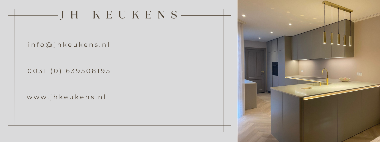 JH Keukens – Maatwerk tot in Detail Bij JH Keukens draait alles om keukens die écht bij u passen. Wij leveren maatwerk keukens die ontworpen worden rondom uw wensen en levensstijl. Dankzij geavanceerde ontwerpsoftware visualiseren we direct samen uw keuken én de bijbehorende kosten. Ons team van vakmensen – waar de verkoper ook de monteur is – zorgt voor een naadloze uitvoering, zonder miscommunicatie. Persoonlijk contact, vakmanschap en oog voor detail staan centraal. Kies voor een keuken die niet alleen functioneel is, maar ook een eyecatcher in uw woning.