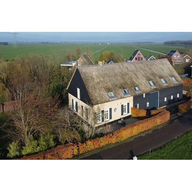 De boerderij is een fijn huis om direct te betrekken. De sfeer is warm, de afwerking degelijk en het geheel biedt alle ruimte om werk, gezin, hobby’s en ontspanning op een prettige manier te combineren. Denk aan een royale woonkeuken als hart van het huis, een sfeervolle woonkamer met balkenplafond en houtgestookte open haard, twee werkruimtes met eigen entree, een prachtige badkamer met vrijstaand ligbad en regendouche, een extra woonkamer op de verdieping en heerlijke slaapkamers waarin iedereen zijn eigen plek vindt. Dit is het type woning waarin het hele elftal moeiteloos kan blijven logeren zonder dat je ergens ruimte tekortkomt. Overdag leven in het groen, ’s avonds samen rond het knapperende vuur en tussendoor genieten van de rust aan het water.