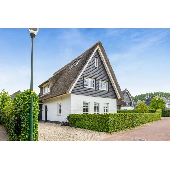 In het jonge en ruim opgezette woongebied De Blaricummermeent, aan een rustig en groen laantje, staat deze charmante rietgedekte vrijstaande woning (A++) van circa 183 m². De woning biedt een comfortabele indeling, royale leefruimtes en een prachtig ruim uniek perceel (614 m²) met veel privacy en vrij uitzicht. De straat is autoluw en uitsluitend toegankelijk voor bestemmingsverkeer – ideaal voor gezinnen of mensen die rust zoeken, met stedelijke gemakken binnen handbereik.